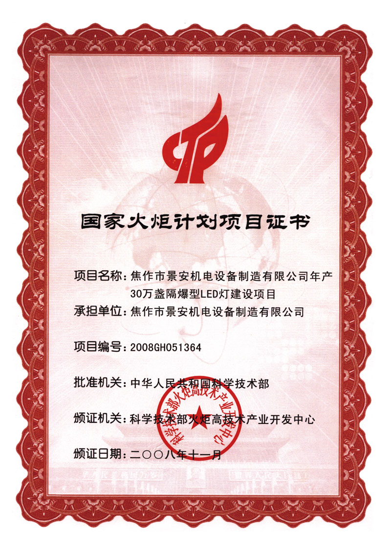 LED火炬計劃證書